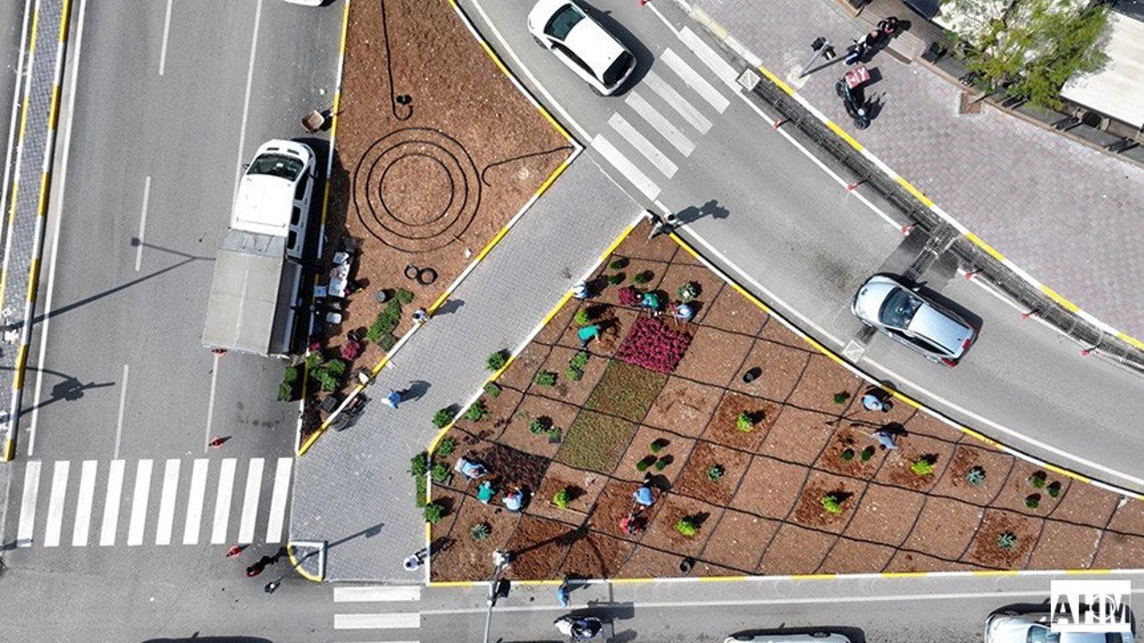 Belediye ekipleri tarafından gerçekleştirilen çalışmalar kapsamında, kavşakta yeşil alanlar artırılırken çevre düzenlemeleri de titizlikle sürdürülüyor.