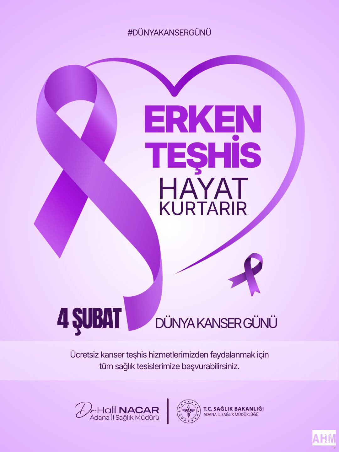İl Sağlık Müdürü Uzm. Dr. Halil Nacar, “Ücretsiz kanser teşhis hizmetlerimizden faydalanmak için tüm sağlık tesislerimize başvurabilirsiniz. Düzenli kontroller ve tarama programları sayesinde kanser erken evrede yakalanabilir; bu da tedavi başarısını artırır, yaşam süresini ve kalitesini yükseltir. Belirtileri hafife almamak, risk grubundaysak taramaları aksatmamak ve bilinçli olmak hepimizin sorumluluğu. Unutmayalım: Erken fark, güçlü tedavi demektir” dedi.