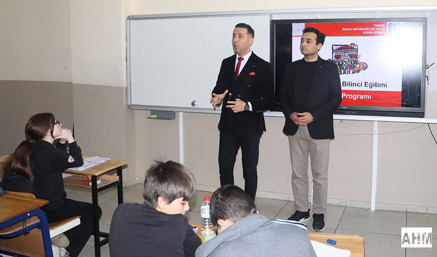 İMO Adana Şube Başkanı Hıdır Çak, görsellerle desteklenen sunumunda afet türleri, depremlerin oluşum süreci, fay hareketleri ve Türkiye'nin depremselliği hakkında bilgi verdi. Çak, deprem öncesinde alınması gereken önlemler ile deprem anında ve sonrasında doğru davranış biçimlerinin hayati önem taşıdığını vurguladı.