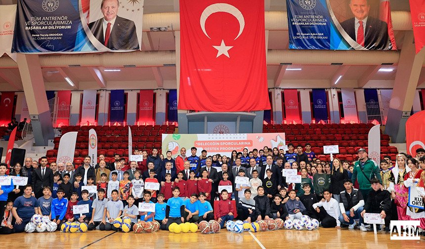 Konuşmaların ardından spor malzemeleri; Vali Mustafa Yavuz ve protokol üyelerimiz tarafından okullarımızın kulüp başkanlarına takdim edildi.