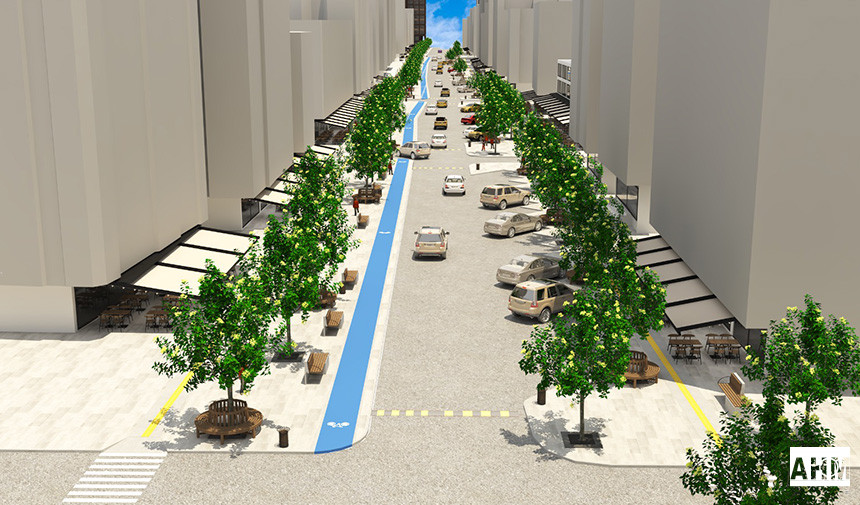 Bisiklet yolunun da bulunacağı yeni düzenleme ile daha yeşil, daha yaşanabilir, yaşayan bir cadde hedefleniyor.